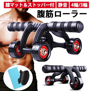 家で簡単トレーニング!スタイリッシュ腹筋ローラー ひざマット付 アブホイール エクササイズローラー 超静音 厚いマット付き アブローラー ブラック