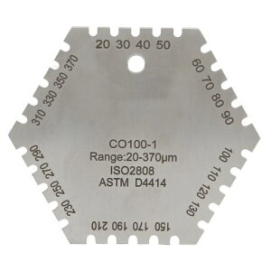 HEXAGONALWETFILMCOMB:20370umの明確なスケールと厚さ測定の六角形ウェットフィルムコーム 測定厚さゲージ:新しく塗装された層、化学工業、接着剤、建築用コーティングの表面のウェットペイントフィルムの厚さを測定する...