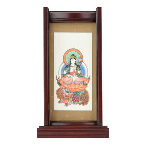 臨済宗の脇仏、文殊菩薩をあらわした、はせがわオリジナルデザインの掛け軸です。文殊菩薩は知恵の仏(三人寄れば文殊の知恵)であり、お仏壇の上段向かって右側に掛けてお祀りします。シルクスクリーンの鮮やかな本紙(絵像部分)に...