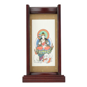 モダン仏壇にオススメの掛け軸 深み有る色合い上品でモダン仏壇に人気。 本紙絵像の細かな書き込みや裏地が金色で高級感があります。このサイズは主に上置き用サイズ [サイズ]縦210×軸先巾104ミリ(多少誤差があります)※通常の掛軸