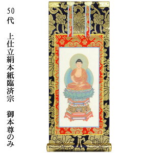 禅宗系(曹洞宗・臨済宗など)のご本尊、釈迦如来の掛け軸です。 各宗派の一番理想とする仏様をご本尊といい、仏の姿を絵であらわしたものを絵像と言います。 お仏壇の中央上段に掛けてお祀りします...