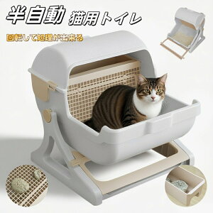 半自動 猫トイレ半自動猫用トイレ 回転して処理が出来る ペットトイレ 猫 ねこ ネコ キャットトイレ 子猫 成猫 ネコ用品 掃除速い 組み立て簡単 固まる猫砂用