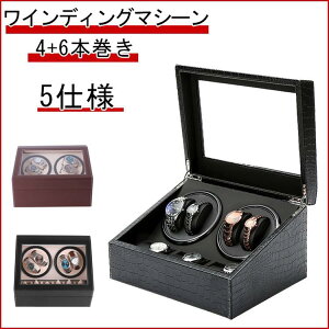 時計収納 ワインディングマシーン 4本巻です 自動巻時計専用の電動振動装置です4本の時計を同時に巻き上げます 別途6本の時計を収納可能です本体表面は柔らかな質感のPUレザーです3通りの回転方法から設定が出来ます本体背面のスイッチで