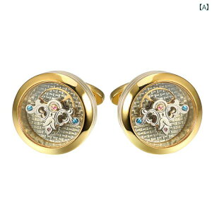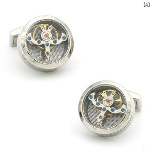 RC カフスボタン、 時計用 カフスボタン、 フレンチ シャツ用 カフスボタン、 カフ ネイル、 新品 メンズ 機械 式 トゥールビヨン バランス ホイールブランド: Retro Creative質感: 銅色の分類:シルバーシルバー底...