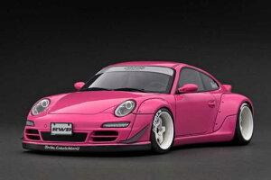 ■商品説明「RWB 997」 を 1/18スケールレジンモデルで再現。ボディカラー:ピンク。WORK S1タイプ18インチホイール(ホワイト)にローダウン仕様。ワイドフェンダー、ダックテール 、リップスポイラー、フロントバンパーにカナ...