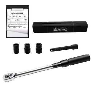 【商品内容】トルクレンチ本体、17/19/21mmソケット、差込角:1/2インチ、エクステンションバー:125mm、取扱説明書、校正説明書。測定範囲:25N・m-220N・m 【使い簡単】ロックリングを指で引き下げてグリップを回すだけ...