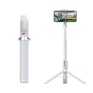 自撮り棒としてもミニスタンドとしても使える最長131cmの7段伸縮ロングスタンド。取り外し可能なBluetooth対応リモコン付きで離れた場所からの撮影が可能です。
