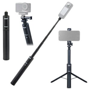 アクションカメラ用アダプターのセット三脚とグリップの2WAY仕様三脚としても、三脚の脚をたたんで自撮り棒としてもご使用いただけます。コンパクトカメラ、スマートフォン、アクションカメラに対応しています。...