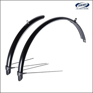 シティ向けの軽量フルフェンダーセット。フレーム側のアイレットとブレーキボルトに固定。ステンレス製のブレにくいステー。頑丈なポリプロピレン製の本体。