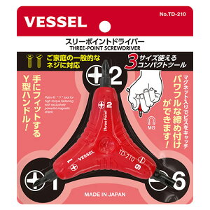 商品名 スリーポイント ドライバー ブランド ベッセル 規格 TD-210 商品サイズ 幅135×高さ120×奥行き20mm 重量g 用途 ねじ締め、緩め作業。 機能・特徴 手にフィットするY型ハンドルです。 パワフルな締めつけができ...