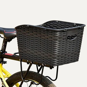 【おしゃれで便利】籐風ビニール紐で編んだうしろ用バスケット。天然籐より耐水・耐熱に優れ、機能性とデザイン性を両立。 【大容量設計】たっぷり入る大容量サイズで、日々のお買い物が便利になります。 【豊富な付属品】防水カバー