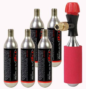 TNI CO2 エアバルブ インフレーター ボンベセット 米式 仏式兼用 CO2ボンベ 16g×6本セット米式・仏式兼用タイプ レギュレーター(ボンベヘッド)+スペアボンベ16g×6個付きバルブを回転させるだけで簡単に流量の調整ができ...