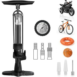 【気圧ゲージ付き空気入れ】気圧ゲージ付きなので、空気圧を確認しながら空気入れが可能です。仏式/英式/米式 バルブ対応 【使用シーン様々】アタッチメント付きなので自転車タイヤはもちろん、サッカーやバレーボール...