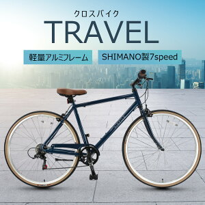 「TRAVEL」は、約12.8kgの軽量アルミフレームに SHIMANO製7段変速を搭載した街乗りに最適なクロスバイクです。 太めの700×38Cタイヤが、街中の悪路や段差でも安定した走行を実現。 身長170から185cmに対応し、快...