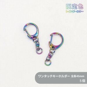 個性的なレインボーカラーが数量限定で新登場! →通常カラーはこちら 非常に使いやすいワンタッチ式のキーホルダー金具で、鞄やベルトに取り付けが簡単です。 ナスカン部分に回転カンが使用されているので、マスコットやチャームなど