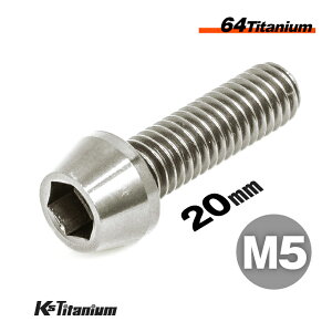 64チタン製 テーパーボルト M5×20 ピッチ:0.8 スレッド長:FULL(全ネジ) のチタンボルトです。 バイク 自転車のカスタムボルトとしてや旧車のレストアに最適です。 【素材】 チタンにアルミとバナジウムをバランスよく組み合...