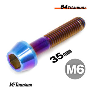 64チタン製 テーパーボルト M6×35 ピッチ:1.0 スレッド長:25 のチタンボルトです。 バイク 自転車のカスタムボルトとしてや旧車のレストアに最適です。 【素材】 チタンにアルミとバナジウムをバランスよく組み合わせたTi-6...