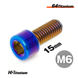 64チタン製 キャップボルト M6×15 ピッチ:1.0 スレッド長:FULL(全ネジ) のチタンボルトです。 バイク 自転車のカスタムボルトとしてや旧車のレストアに最適です。 【素材】 チタンにアルミとバナジウムをバランスよく組み合...