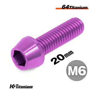 64チタン製 テーパーボルト M6×20 ピッチ:1.0 スレッド長:FULL (全ネジ) のチタンボルトです。 バイク 自転車のカスタムボルトとしてや旧車のレストアに最適です。 【素材】 チタンにアルミとバナジウムをバランスよく組み...