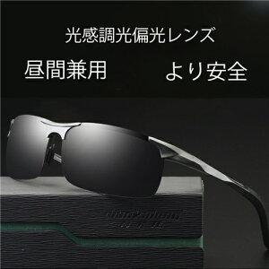 [ゲットオン] 調光偏光スポーツサングラス 変色レンズ 昼夜兼用 紫外線に反応してレンズの色が変わる 超軽量アルミフレーム UV400 紫外線カット 運転ドライブ アウトドア キャンプ 自転車 【商品内容】:調光偏光サングラス×1...