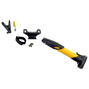 ●英式・米式・仏式バルブ対応口金。 ●コンパクトでたくさん空気が入る2段圧縮ボディ。 ●プラスティックボディなので、軽くて、錆びない。 ●握りやすいT字ハンドル。 ●脱落防止ベルト付。 ●ポンプホルダー付(※ボトルケージ取付台