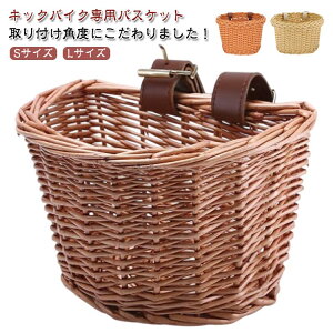 子供用自転車バランスバイクキックスクーター等に取り付け可能な前かごです。レザーベルトを巻くだけで簡単に取り付けられます。子供用の遊具にぴったりなミニサイズのラタン風バスケットです。サイズM Lサイズに...