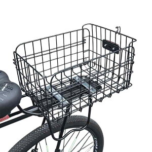 自転車カゴ 後ろ 折りたたみ 大容量 軽量 自転車 カゴ 後ろ 自転車 荷台 50kg耐荷重 簡単取り付け 37x27x20cm 黒 鉄製 フレーム設置 ポータブル 軽快車用 荷台付折りたたみ自転車用自転車カゴ...