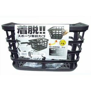 スポーツ車前カゴ 着脱樹脂バスケットキャリア不要で簡単着脱ハンドルへの取付ブラケット付サイズ高180×幅320×奥240mm