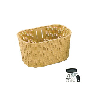 籐風で北欧風デザインのフロントバスケット。 ■取付金具付 ■材質:PP ■重量:約690g ■製品寸法:タテ216mm ■上面ヨコ418mm×奥行290mm ■底面ヨコ368mm×奥行222mm