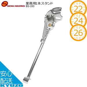 品番BS-100 商品名業務用1本スタンド メーカー昭和インダストリーズ 素材スチール 加工クロムメッキ サイズ20インチ用 特徴・安定感と耐久性のある重量運搬車用1本スタンド。