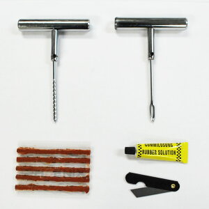 ■oneセット内容■ブレード2種類、ラバーセメント、パンク修理材×3本 【作業手順】1. 釘を抜きます。2. 穴のバリを取り、穴を少々広げます。【コツ】1番の釘がささっていた方向を意識して、スクリュードライバーを右回し(入れずらい方向...