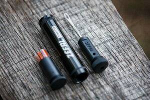 チューブレスタイヤ補修ツール、ナノ エアーブースター、25g CO2 カートリッジ1本をひとつにまとめたMTB向けチューブレスタイヤリペアキット。