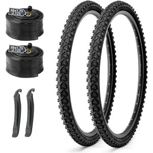このセットには、以下が含まれています:自転車タイヤ×2本、自転車チューブ×2本、タイヤレバー×2本。各イプの自転車に対応:ビーチクルーザー/マウンテンバイク/シティサイクル/BMX、サイズが合えば。全地形車用タイヤのサイズ:26×2.125