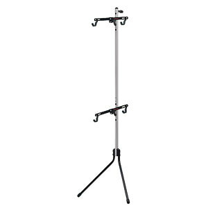 ネジ等で固定せず、3点で自立させる壁立て掛け式ディスプレイスタンド壁に立て掛けるように置くだけ、設置が簡単で設置場所の移動も楽々自転車2台の展示、収納が可能本体は上品なチタン塗装が施された耐久性のあるスチール製自転車2台