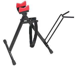 自転車の清掃やディレーラー調整などのメンテナンスに最適な省スペース多目的スタンド。ボトムブラケットを支え、前輪タイヤを挟むだけの簡単装着。付属のベルクロテープを利用し保持力アップ。ロード、MTB、軽快車など幅広く使用。