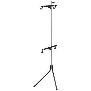 壁立てかけ式の2台用自転車展示台です。 ・壁に立てかけるだけ 自転車を上下2段に重ねることで、1台分のスペースに2台の自転車を収容することができるペアスタンドを簡素化した 簡易型の自転車収納台です。壁にもたれさせるだけという非