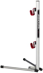 ミノウラ DS-2200 ブラック ディスプレイスタンド 縦置き・横置き両用タイプ 自転車を縦置き、横置きで収納出来る省スペース1台用ディスプレイスタンド。 タイヤ受け部分が振り子形状になりタイヤサイズを調整しなくてもしっかりホールド
