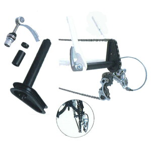 輪行時にエンド幅を狂わせない小道具輪行などで後輪をはずしたときに、エンド幅を維持してチェーンのばたつきを抑えます。エンド幅は130、135、160、165mmに対応します。商品画像の短いクイックレバーは付属しますが、長いクイックレバー