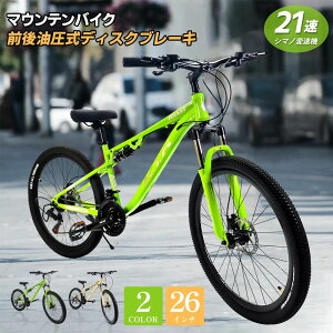 ?【21段階の変速機を搭載】右ハンドルに7段階のリアディレイラー(変速機)を、左ハンドルには3段階のフロントディレイラー(前変速機)を搭載し急勾配の坂道もスムーズに走行可能! ?【山道でも快適に走れるタイヤ】リム径26インチ・厚さ2イ...