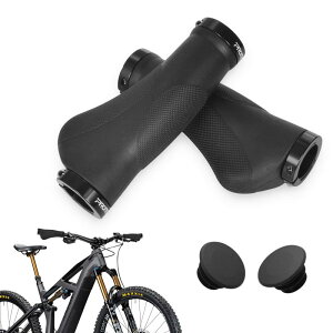 PRUNUSグリップ、ゴム製滑り止めハンドルバー、牛角付き人間工学に基づいたマウンテンバイク MTBバイク、BMXバイク、折りたたみ自転車用のダブルロックオンMTB(ブラック)人間工学に基づいたハンドル:自転車のグリップハンドルは人間工学