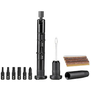 チューブレスタイヤの修理に使用する着脱式ツール類と、 6サイズの六角レンチ、T25 トルクスレンチを備えたミニツール