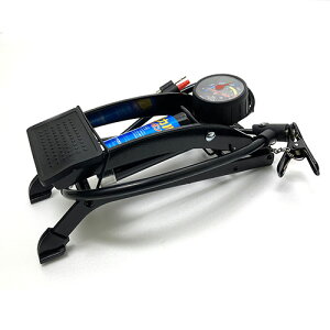 ゲージ付きの足踏み式ポンプです。浮き輪・ボールに空気を入れられるレジャーノズル付き。※フットポンプは傾斜の無い平らな場所で使用してください。 英式・米式バルブ対応。浮き輪・ボールに空気を入れられるレジャーノズル付き。SG