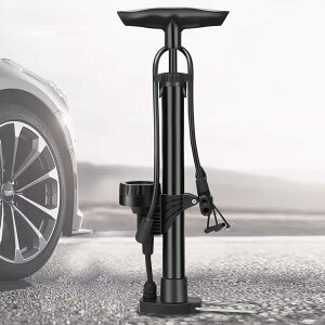 【見やすい空気圧計付き】直径の39.5mm大きくて読みやすい空気圧ゲージ(最大120psiまで計測可能)。 【空気を入れやすい】フロアポンプのように足でポンプを固定して、ハンドルに体重をかけてしっかり高圧まで入れられます。 【全バルブ対応