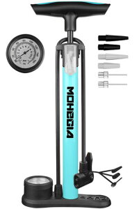 【全バルブ対応】MOHEGIA 自転車 空気入れ 160PSI 圧力計付き:仏式 米式 英式バルブ対応 フロアポンプ - 軽量 コンパクト ボール/浮き輪用