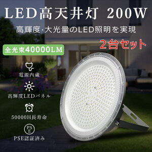 SPEC 仕様 ●商品名:LED高天井照明 LED投光器 ●消費電力: 200W ●全光束: 40000lm ●入力電圧:AC85-265v ●周波数:50-60Hz ●色温度:電球色3000k/昼白...