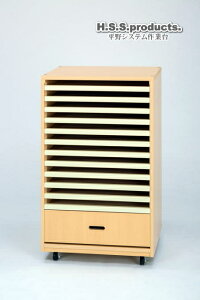 平野システム作業台WEBSHOP 色画用紙・画用紙整理棚(木目調)スリム小型DX キャスター付き 四つ切:12段(下部に道具用引き出し付き) 商品コード 08-YOU-SEI-MS-IV 注意事項 【法人様向け専門商品です】...
