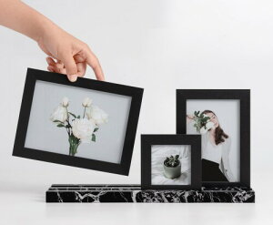 SUMGAR フォトフレーム 3枚 木製&大理石模様ベース 色紙や写真(2L/KG/8*8cmサイズ) 卓上・壁掛け兼用 ポストカード ハガキ ディスプレイ 複数枚 シンプル 写真立て 額縁 写真フレーム おしゃれ ガラス (黒) 【...