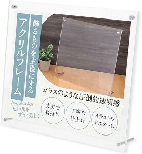 ■商品内容飾る場所を邪魔しない透明感。 美しい透明のフレーム。 挟むだけ簡単、縦横どちらでも飾れる。 ※卓上専用のため壁掛けには対応しておりません。 安全なアクリルを使用しています。 アクリルが紫外線から作品の色褪せ劣化な