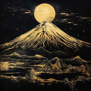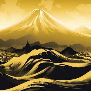 【このポスターについて】 このアートワークは、富嶽、あるいはふじの山とも称される、日本最高峰の山々を金色で描き出し、空間に豊かさと調和をもたらすデザインが特徴です。その温かな輝きは、現代の居住空間を彩るだけでなく、金運