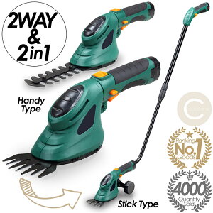 芝刈りに! 生垣に! 刃の取り換えにより1台で2台分の働きができ、お庭仕事で大活躍!軽量&安全&便利なコードレス!芝刈り用や生垣用を使い分けサイズ(約):バリカン刃装着時:幅8.5×高さ12×全長30(cm)。